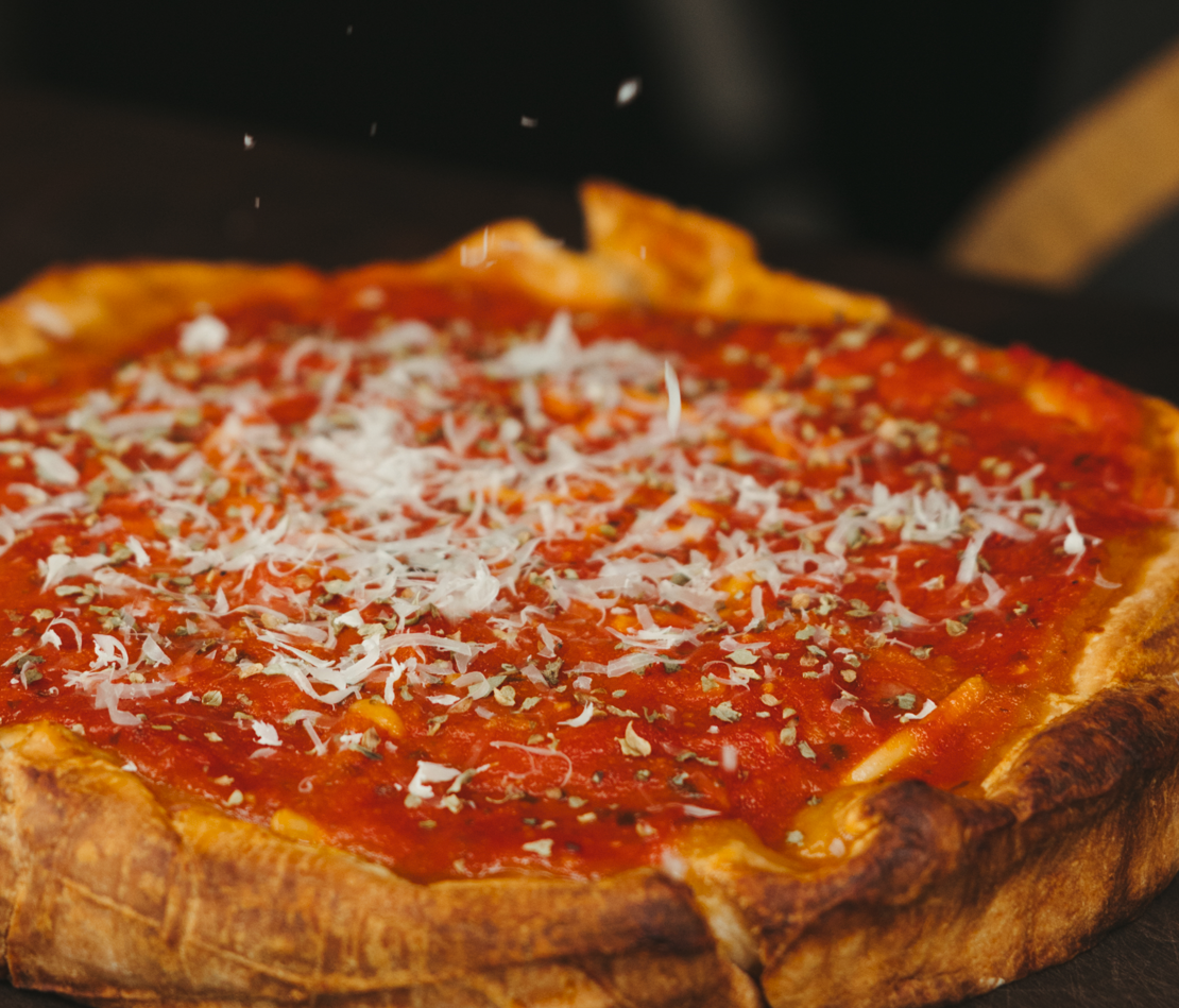 In deep dish, the sauce defines everything. Ours is slow-simmered for hours, closely guarded by our pizza makers, and dangerously addictive. One taste and you'll understand why we protect this recipe.